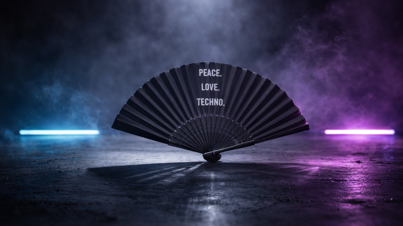 2 Pack Set Techno Rave Handfächer - Fächer klein stabil schwarz Bambus Holz - Sommer Hand Fan Asiatische Deko für Geburtstag, Party, Club, Festival, Rave